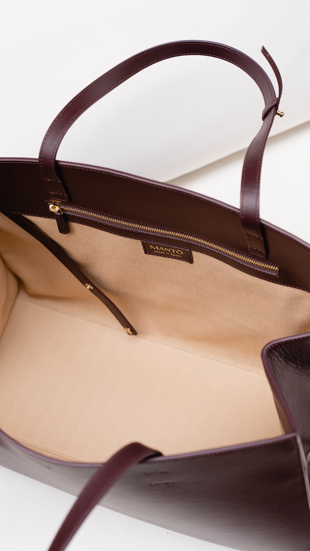 El Kioto Burdeos es un bolso icónico de MANTÓ. Es el favorito de las personas trabajadoras y viajeras porque con un mismo bolso puedes ir a una reunión de trabajo o a un viaje con amigas, y mantener siempre el look sofisticado y chic sin esfuerzo que te aporta un buen bolso de piel.