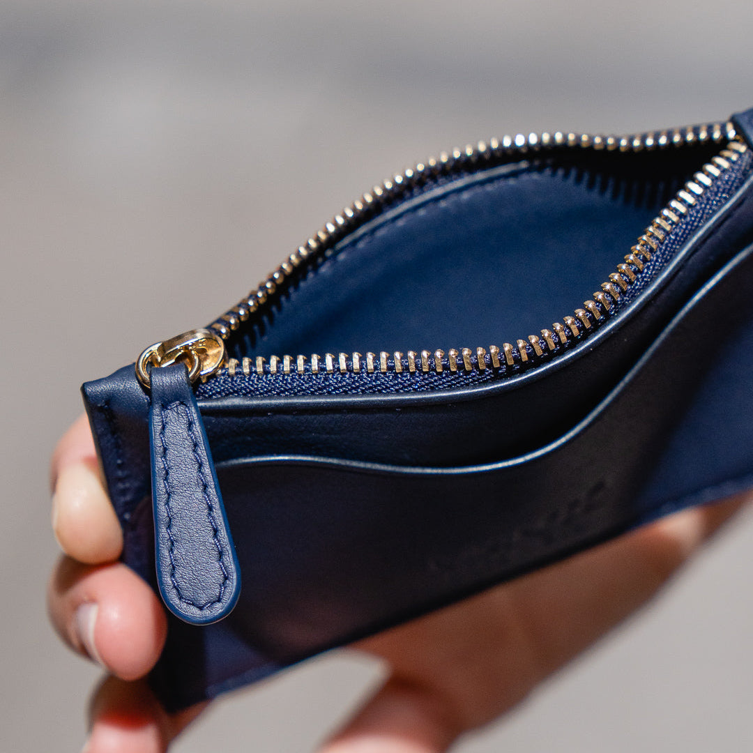- Capacidad: monedas, billetes y/o tarjetas en el compartimento superior. Una tarjeta adicional en el compartimento frontal.