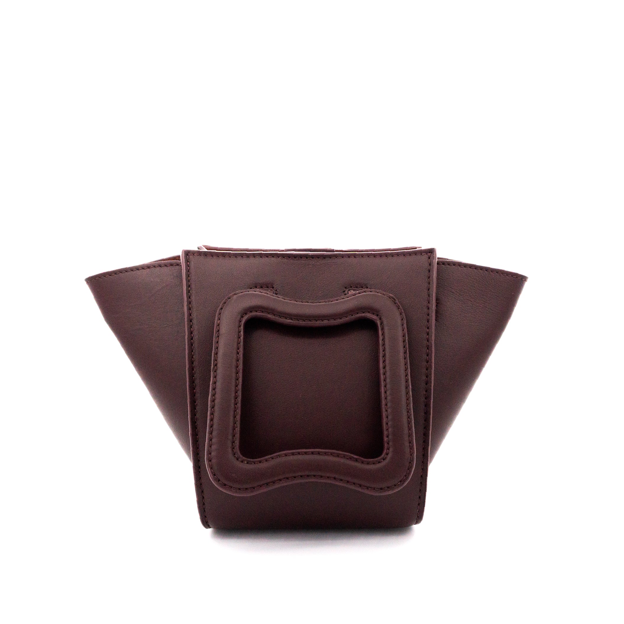 Bolso cruzado o de mano de piel de alta calidad con doble asa abatible y bandolera deslizante extraíble con forma de capazo.